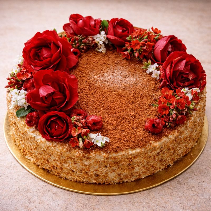 Sastāv no kārtaina medus biskvīta, kas sajauktas ar skābā krējuma krēmu.