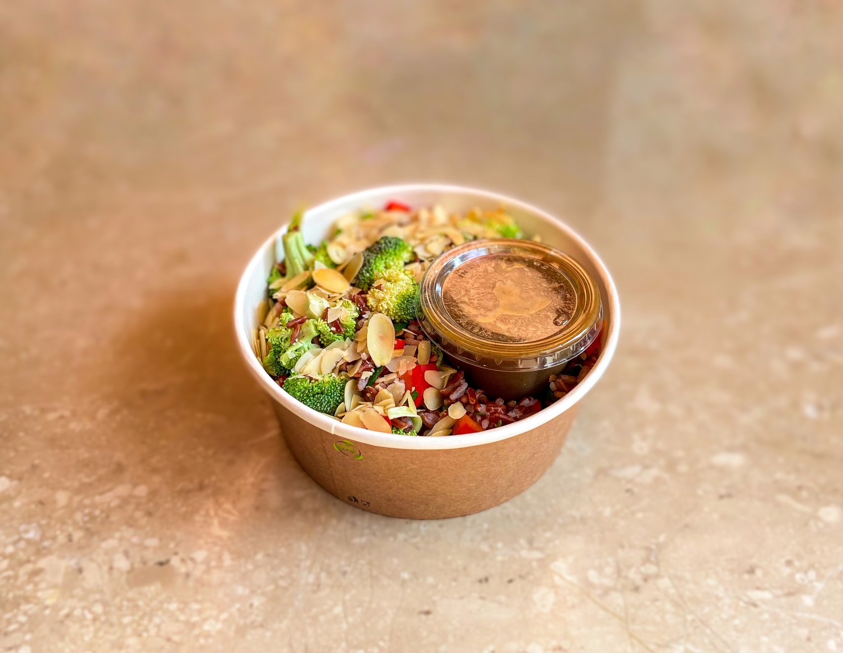 / Sarkano rīsu salāti ar brokoļiem un papriku (V)